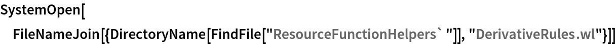 ResourceFunction["ChainRule"][f,x] applies the chain rule for computing the derivative of f with respect to x, returned as an inactive result. |