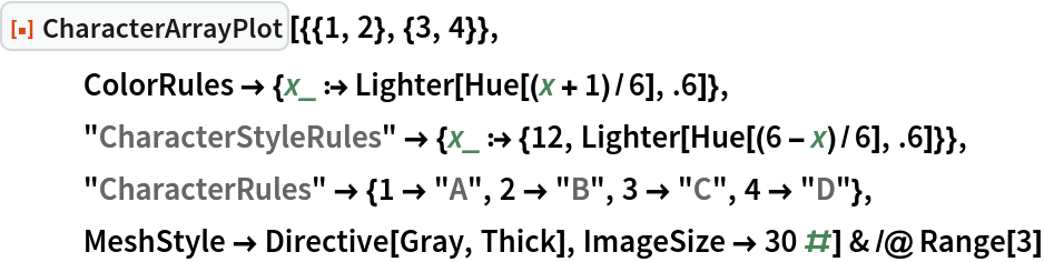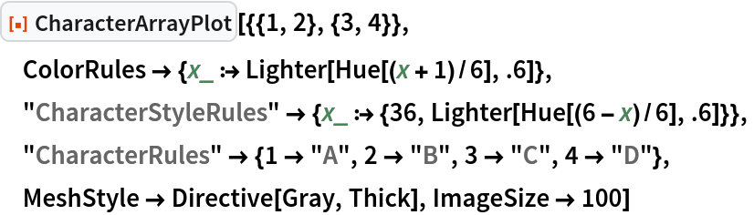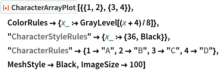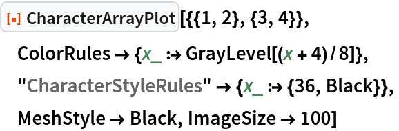 ResourceFunction["CharacterArrayPlot"][{{1, 2}, {3, 4}},