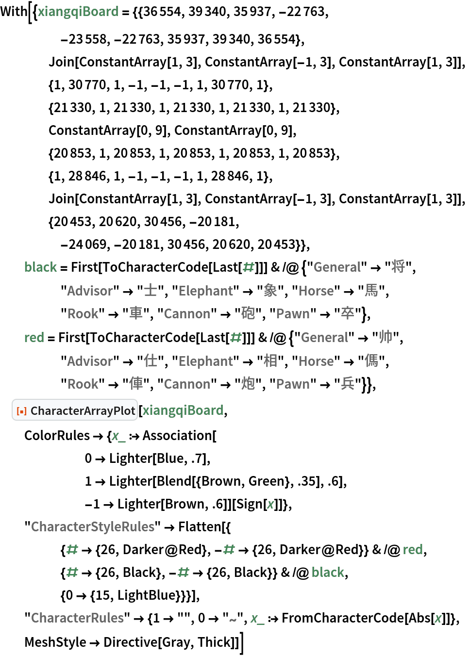 ResourceFunction["CharacterArrayPlot"][xiangqiBoard,