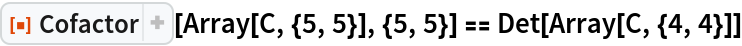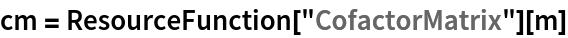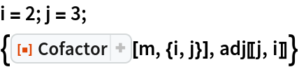 ResourceFunction["Cofactor"][m,{i,j}] gives the (i,j) cofactor of the square matrix m. |