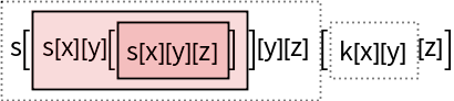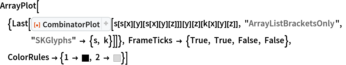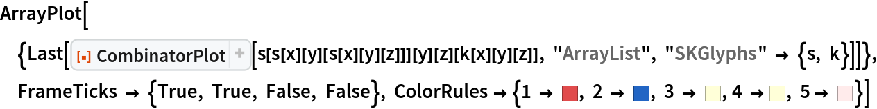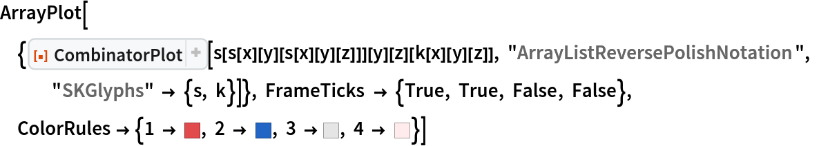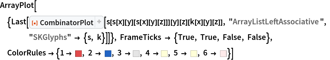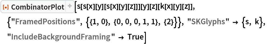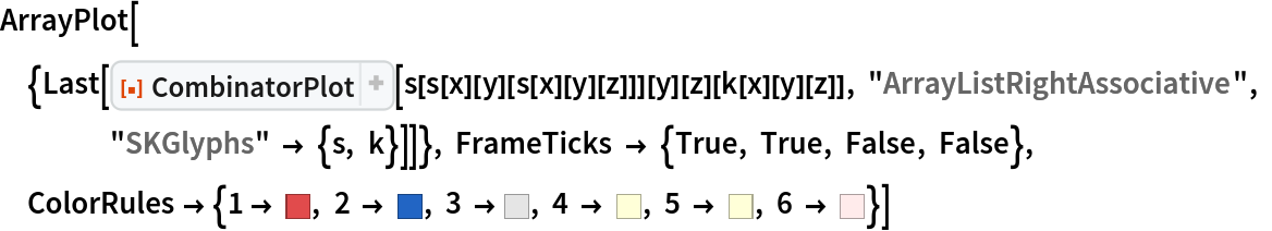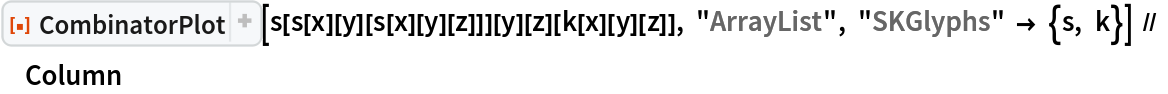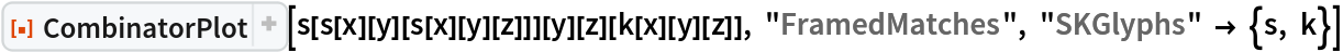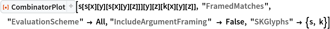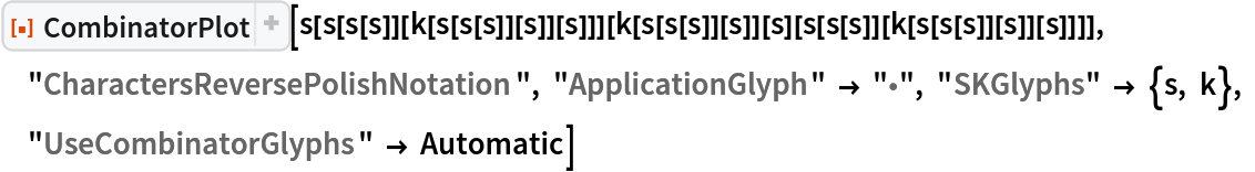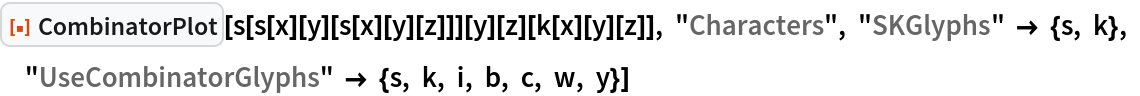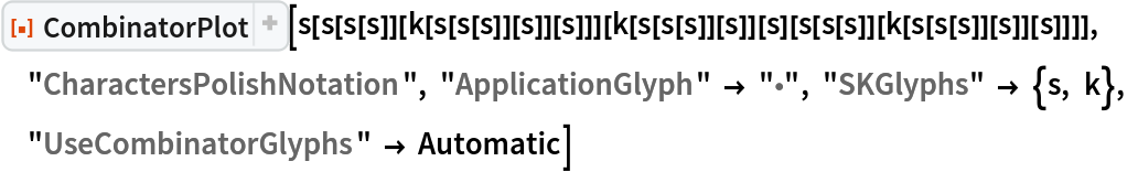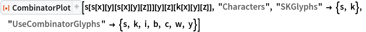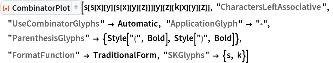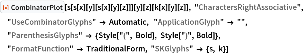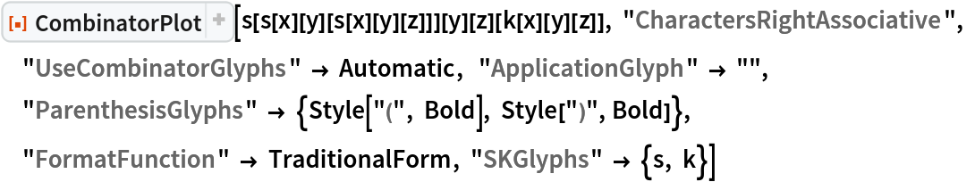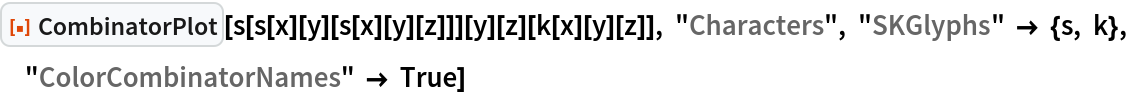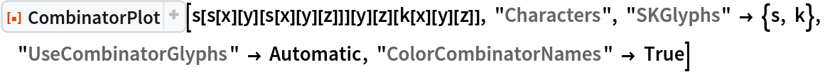 Show a combinator expression with colored combinator glyphs. Note that the Automatic value for "UseCombinatorGlyphs" sets the assumption that the CombinatorS and CombinatorK glyphs should be used for the corresponding characters: