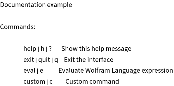 ResourceFunction["CommandLineTools"]["Interface"] creates a blocking interface with default commands. | |
