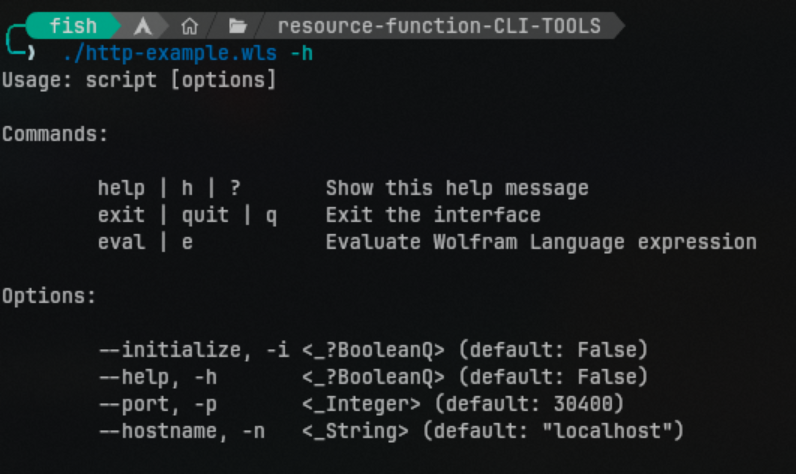 ResourceFunction["CommandLineTools"]["Help"] prints a help message to stdout. |