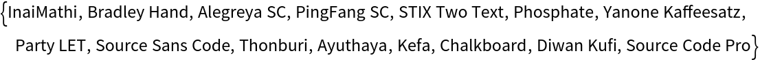 ResourceFunction["CompareFonts"][text,{font1,font2, font3,...}] show the String text in a given list of font families fonti. | |