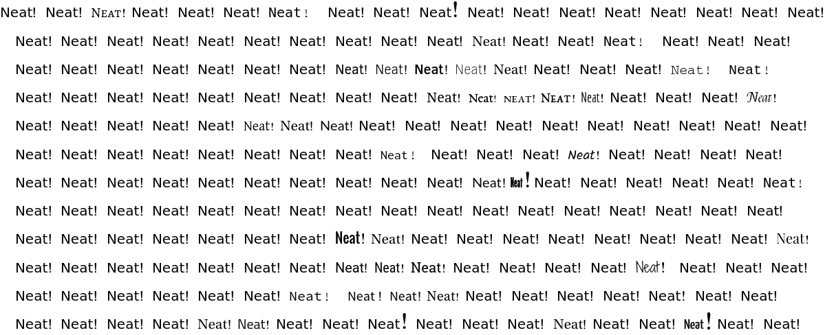 If a font size is given, it may be followed by the size of a random sampling, shown here twice: