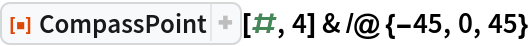 ResourceFunction["CompassPoint"][#, 4] & /@ {-45, 0, 45}