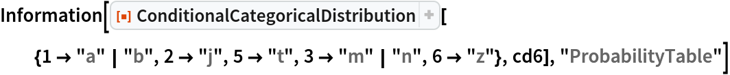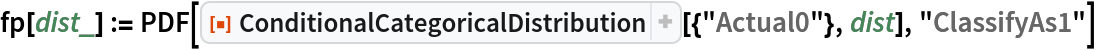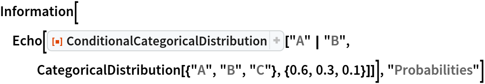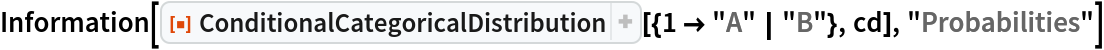 The value of the "FlattenUnivariate" option (True by default) determines whether the result of a univariate ConditionalCategoricalDistribution has its categories described without a List wrapper: