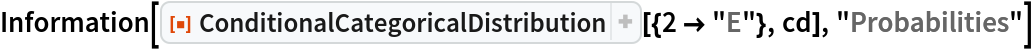 Find the probabilities from that categorical distribution conditioned on the second dimension taking on a value of "E":
