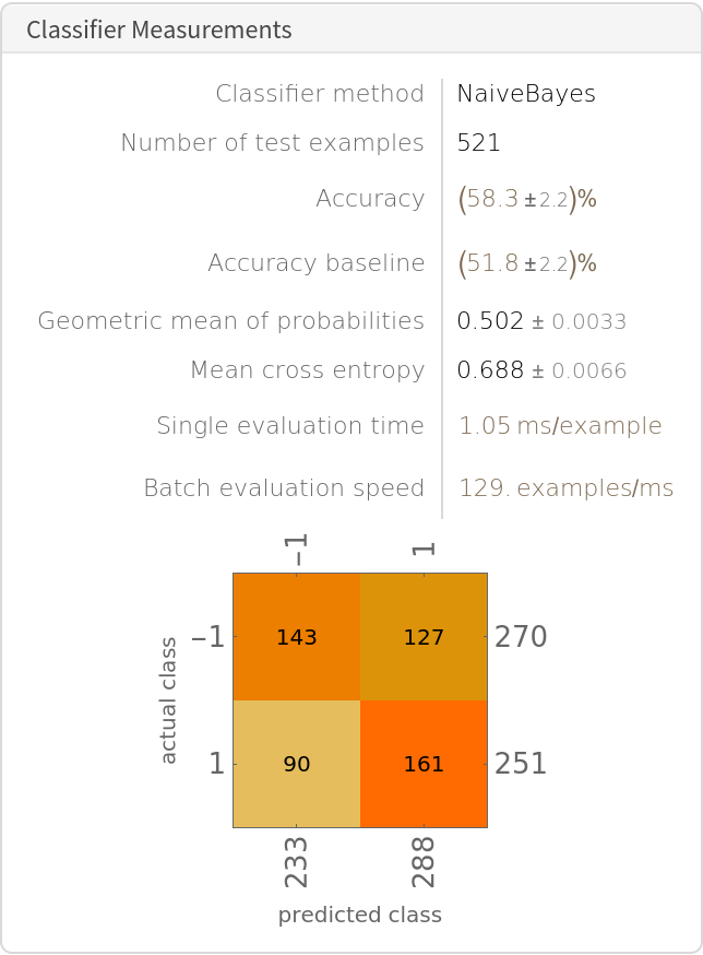 ResourceFunction["ConfusionMatrixToClassifierMeasurementsObject"][m,classes] converts a numeric confusion matrix m into a ClassifierMeasurementsObject where classes are a list of the classes. |