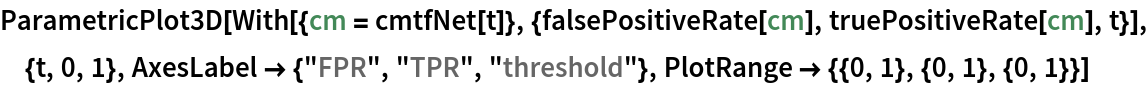 Show the three-dimensional ROC (receiver operating characteristic) curve for the network: