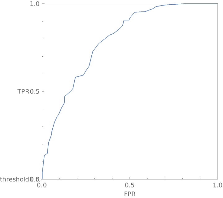 Show the graphic from the top and notice that even though the ROC curves look roughly the same in two dimensions, the false positive and true positive rates for the two different pH groupings of wine differ significantly at a threshold of 0.5: