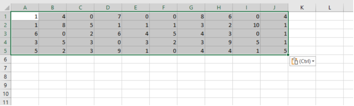 Go into Excel or any other spreadsheet application and paste the values: