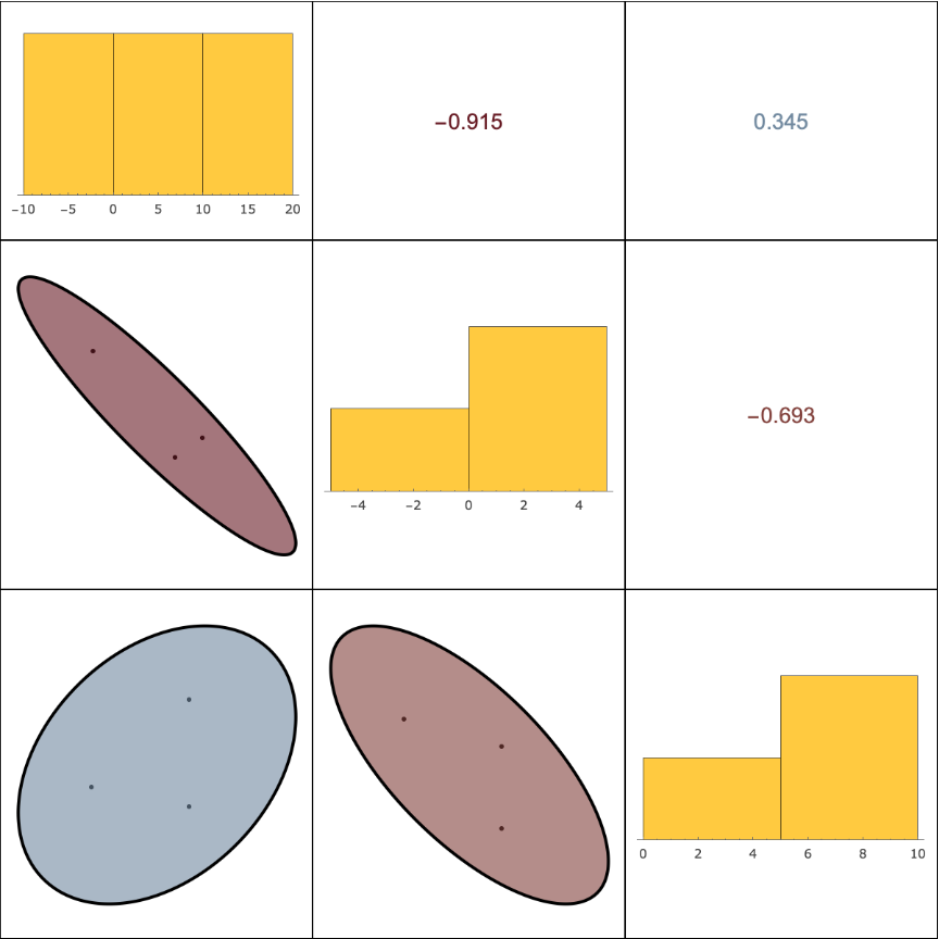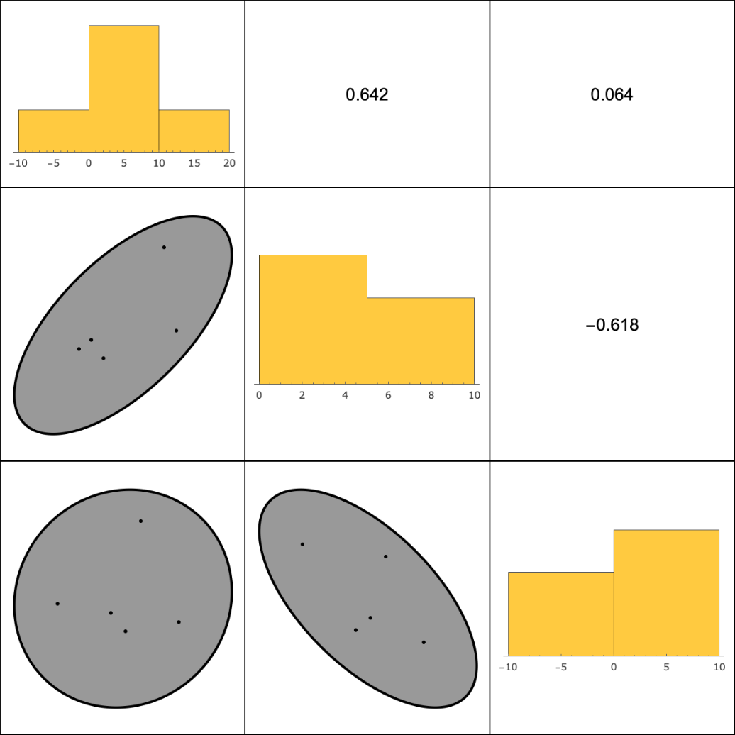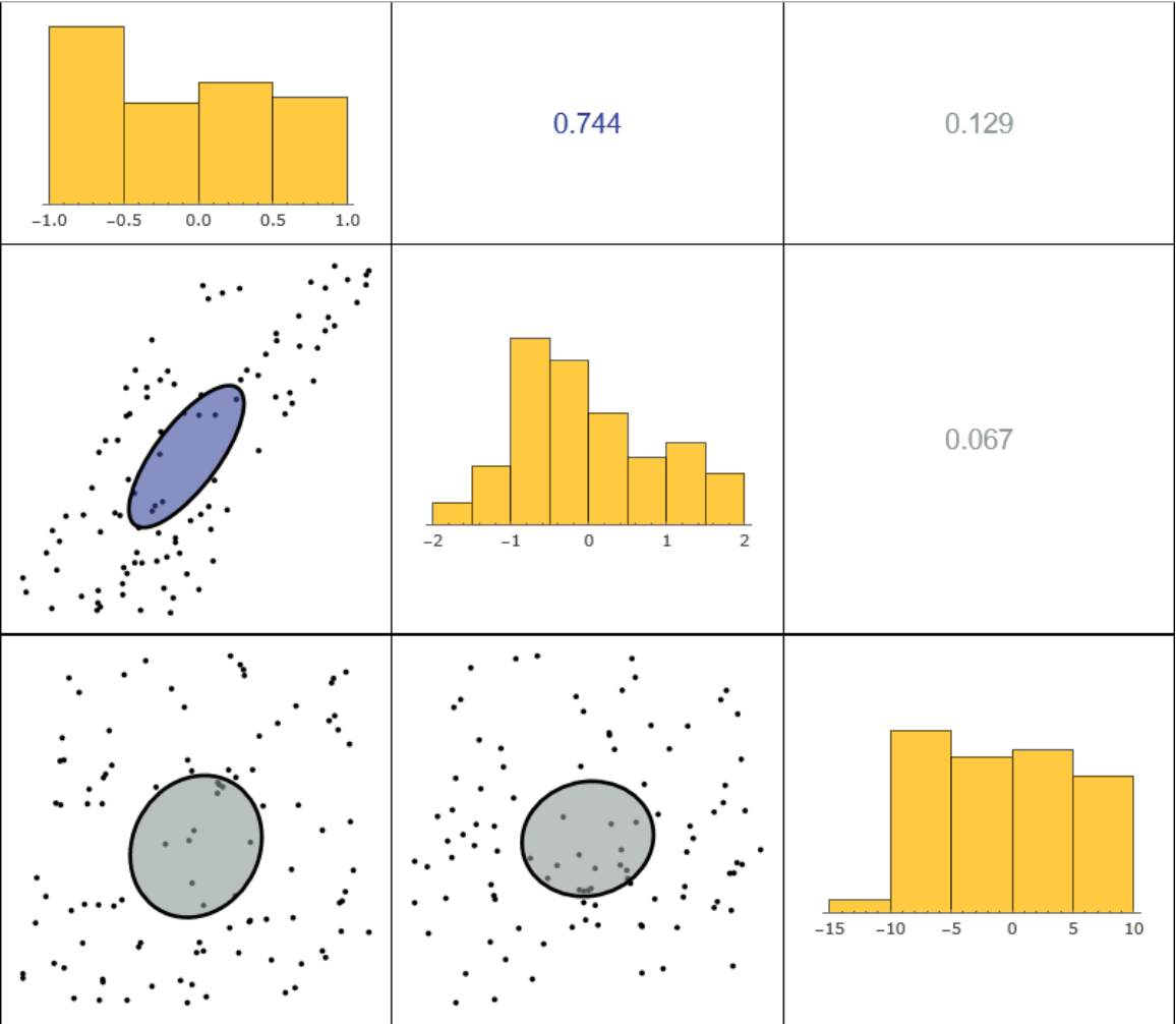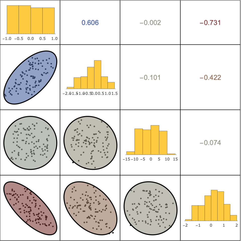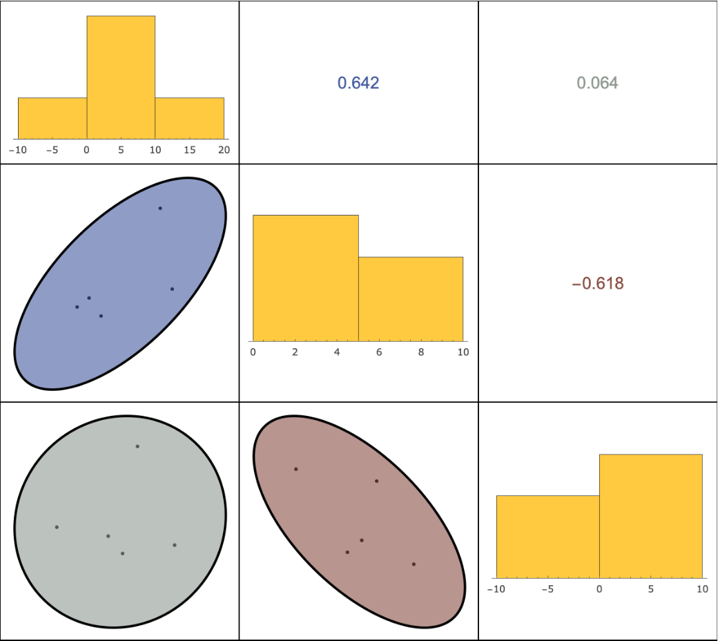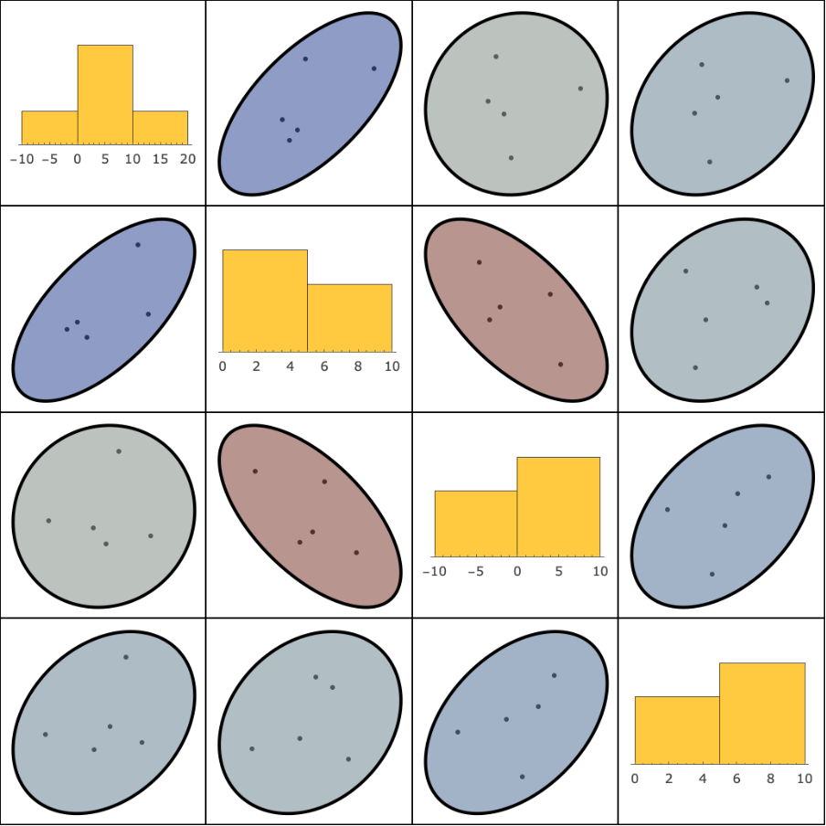 ResourceFunction["CorrelationChart"][data, "EllipsoidQuantile" -> .2]