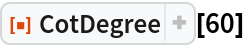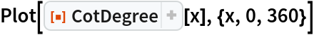 ResourceFunction["CotDegree"][x] computes the cotangent of an angle x, measured in degrees. |