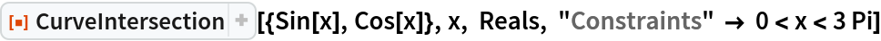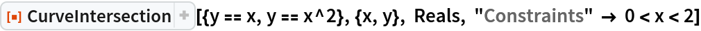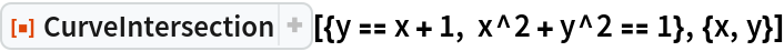 ResourceFunction["CurveIntersection"][{expr1,expr2},{x,y},dom,type] returns the intersections with format type. |