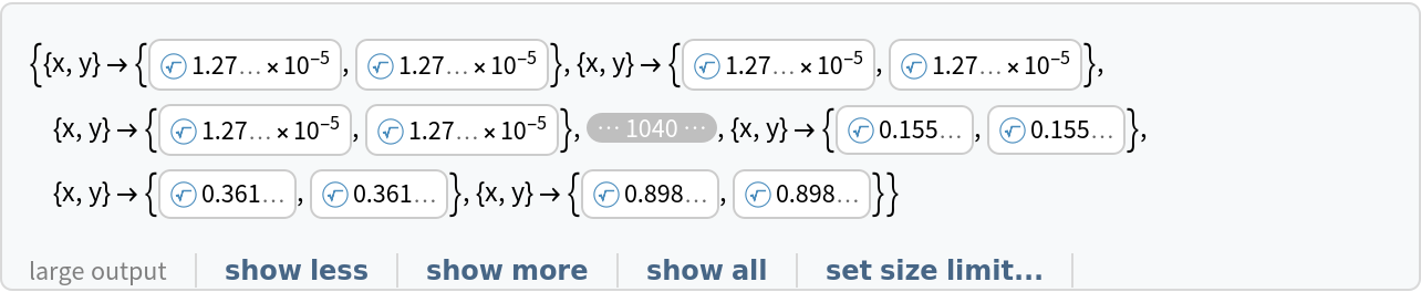 ResourceFunction["CurveIntersection"][{expr1,expr2},{x,y}] returns the intersections of implicit curves expr1 and expr2 as points in the xy-plane. | |