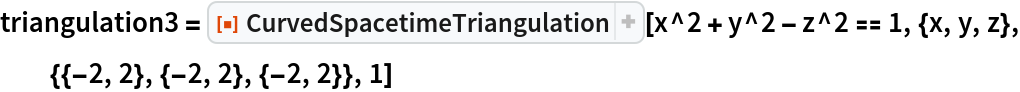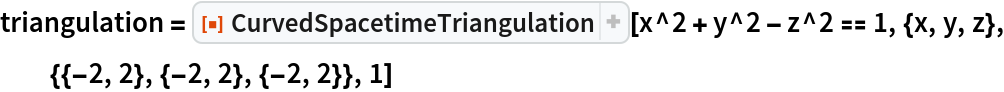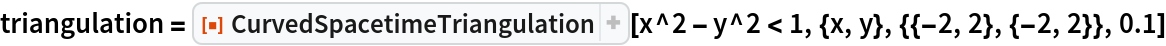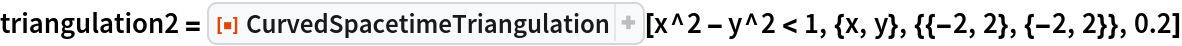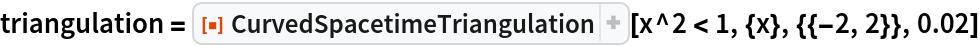 ResourceFunction["CurvedSpacetimeTriangulation"][cond,{x1,…,xn},{{xmin,xmax},…},meas] restricts the triangulation to the bounds {xmin,xmax}×…. | |