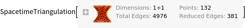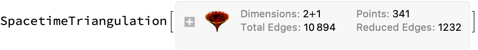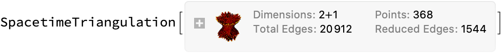 | "MeshConnectivityGraph" | connectivity graph of the mesh region corresponding to the triangulated spacetime surface |