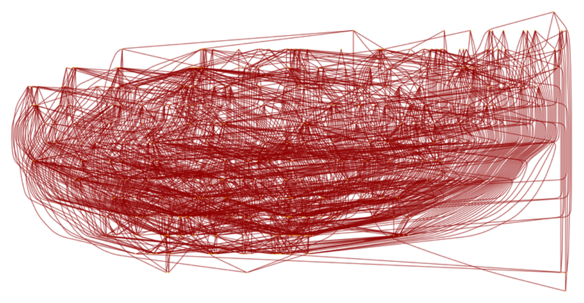 Show the pure transitively-reduced causal graph using only triangulation edges (with vertex coordinate information removed):