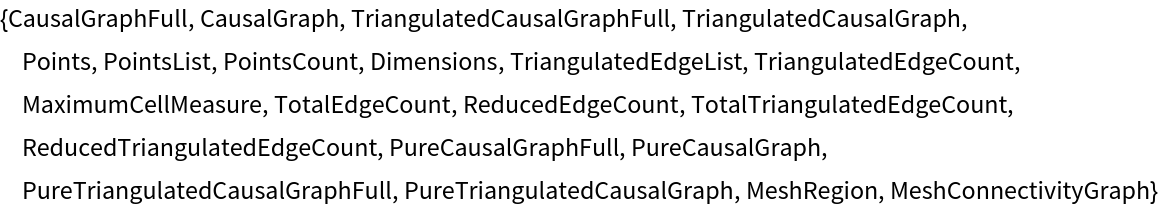| "TriangulatedCausalGraph" | transitively reduced triangulated causal partial-order graph |