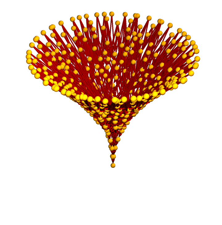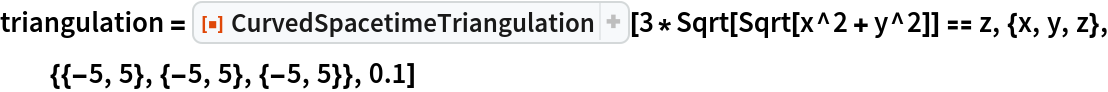 Produce a triangulation of a 2+1-dimensional paraboloidal region of spacetime based on Flamm's paraboloid (related to the Schwarzschild geometry) into simplices of measure (volume) up to 0.1: