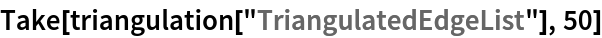 Show the first 50 (undirected) edges in the triangulation of the spacetime surface: