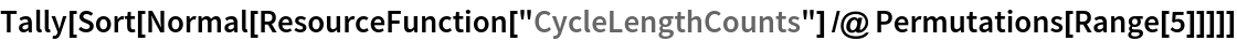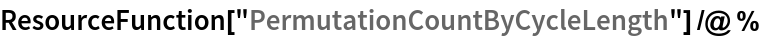Use the resource function PermutationCountByCycleLength to count the number of permutations of each possible type: