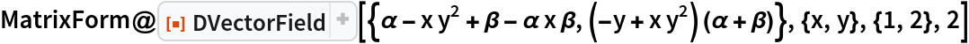 The linear approximation at the origin and its transpose at β=1+α2 and α=ω: