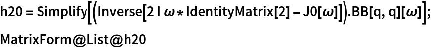 h20=(2 ⅈω 𝕀2×2-AA)-1BB(q,q), h11=-AA-1BB(q,q)