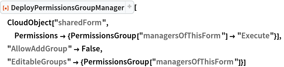 ResourceFunction["DeployPermissionsGroupManager"][] deploys a CloudObject containing an interface for editing PermissionsGroup values. | |