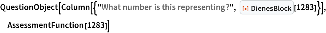 ResourceFunction["DienesBlock"][n] creates a grid of graphics of the digits of the integer n in the style of Dienes blocks. |