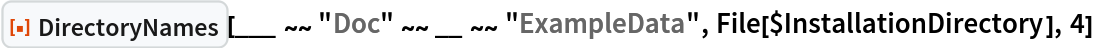 ResourceFunction["DirectoryNames"][{form1,form2,…}] lists all directories whose names match any of the formi. | |