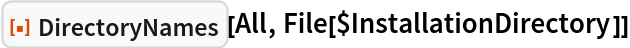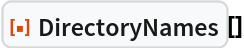 ResourceFunction["DirectoryNames"][form] lists all directories in the current working directory whose names match the string pattern form. | |