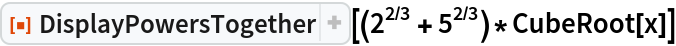 When the cube root above is distributed across the sum, DisplayPowersTogether can combine factors: