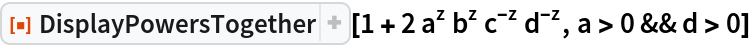 The next example is not in a form that allows DisplayPowersTogether to combine factors:
