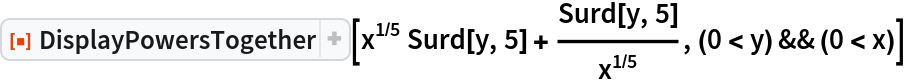 Surd is a generalization of CubeRoot. DisplayPowersTogether combines expressions involving Surd when appropriate: