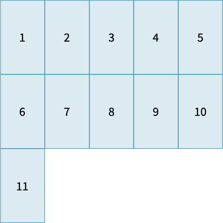 If an arrangement results in unequal rows, the last positions will not be filled: