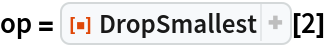 ResourceFunction["DropSmallest"][n] represents the operator form of ResourceFunction["DropSmallest"]. |