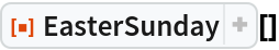 ResourceFunction["EasterSunday"][] gives the date of Easter Sunday in the current year. | |