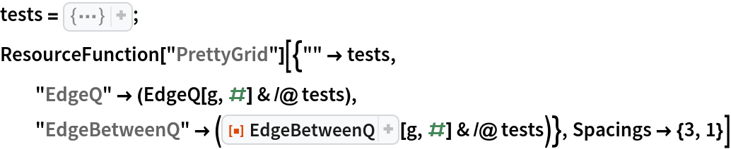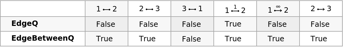 Note that EdgeQ will give False because it takes edge properties, such as tags, into account: