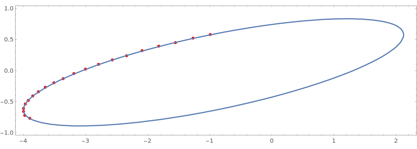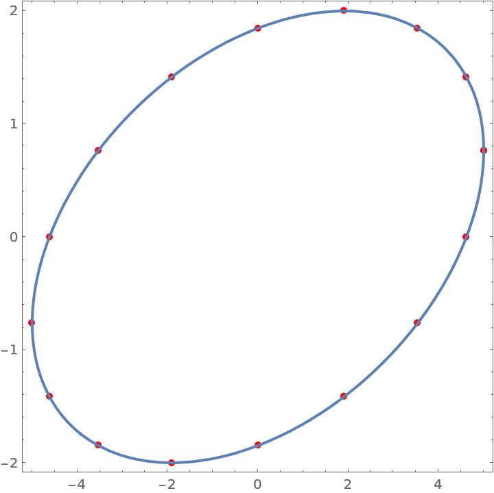 Make a list of 200,000 MachinePrecision points near the above ellipse: