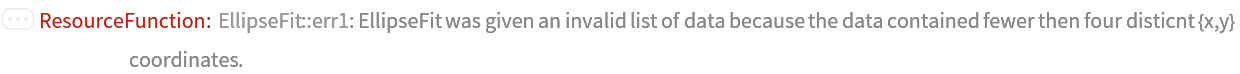 In this case the data has three distinct points, so an infinite collection of ellipses pass perfectly through all the data. When that happens EllipseFit displays a Message and returns unevaluated: