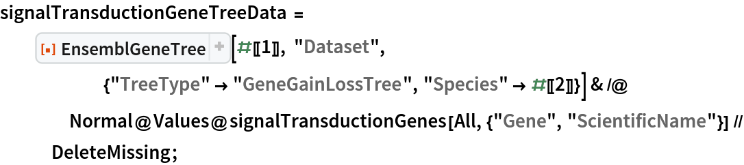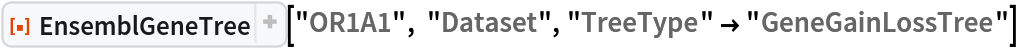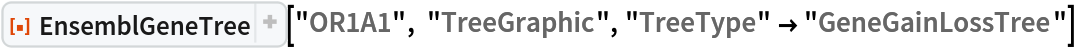 ResourceFunction["EnsemblGeneTree"][gene,"Tree"] returns the Tree object illustrating the relations among organisms. It does not account for branch lengths (genetic distances) or gene gain/loss events.