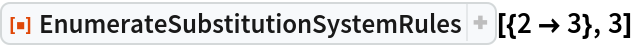 ResourceFunction["EnumerateSubstitutionSystemRules"][{2 -> 3}, 2]