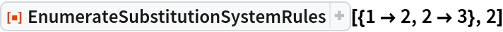 ResourceFunction["EnumerateSubstitutionSystemRules"][{1 -> 2, 2 -> 3},