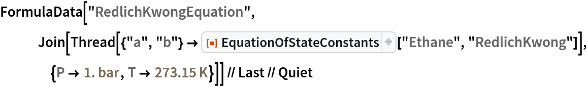 Use the Redlich–Kwong equation to compute the molar volume of ethane at standard temperature and pressure: