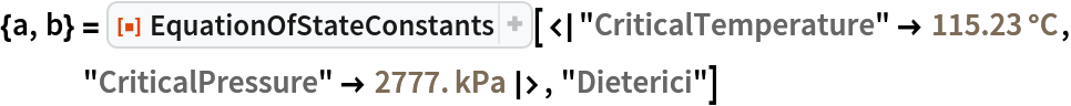 Compute the constants for the Dieterici equation for Freon C-318 by supplying explicit values for the critical temperature and pressure: