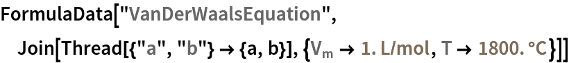 Use the van der Waals constants to compute the pressure of argon, given a molar volume of 1 L/mol at a temperature of 1800 °C: