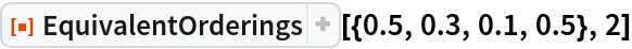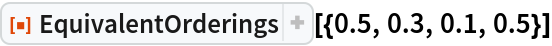 ResourceFunction["EquivalentOrderings"][list] return a list of all possible orderings of list considering the permutations of equal items. | |