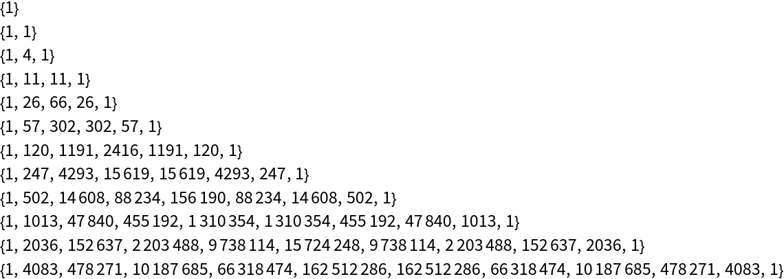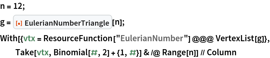 g = ResourceFunction["EulerianNumberTriangle"][n];